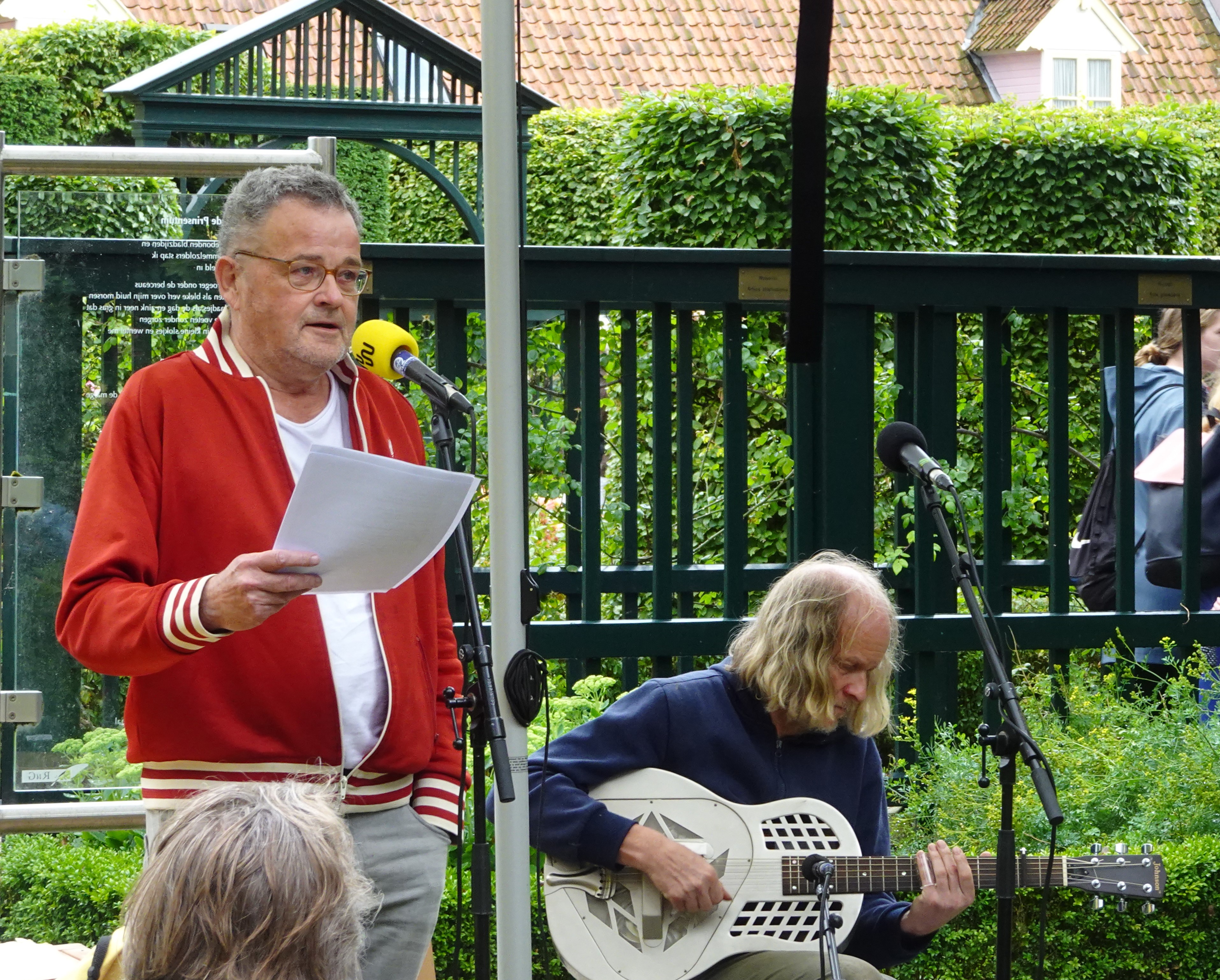 Tijdens Awater Live bleef het droog. Gelokt door de muziek van Bert Ridderbos, kropen steeds meer poëzieliefhebbers uit hun schuilplaatsen en vonden de weg naar het hoofdpodium.