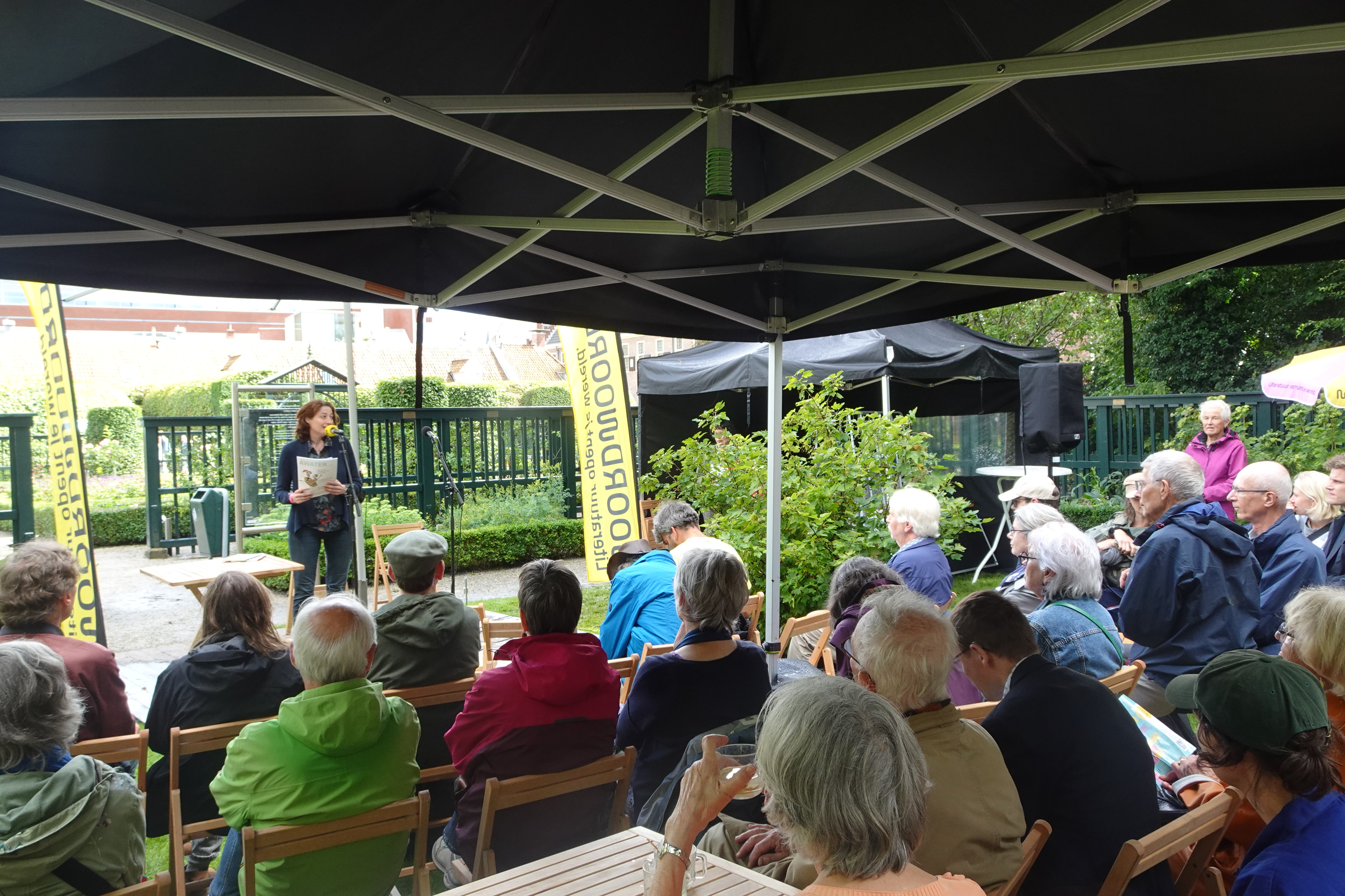 Na een aantal jaar gebivakkeerd te hebben in de Hortus in Haren keerden de dichters dit jaar terug in de Prinsentuin in het centrum van Groningen. Op het hoofdpodium verzorgde Poëzietijdschrift Awater op een regenachtige zaterdagmiddag op uitnodiging van Noordwoord een editie van Awater Live, met Kira Wuck en Tonnus Oosterhoff als gasten en hoofdredacteur Myrte Leffring als moderator/gespreksleider.