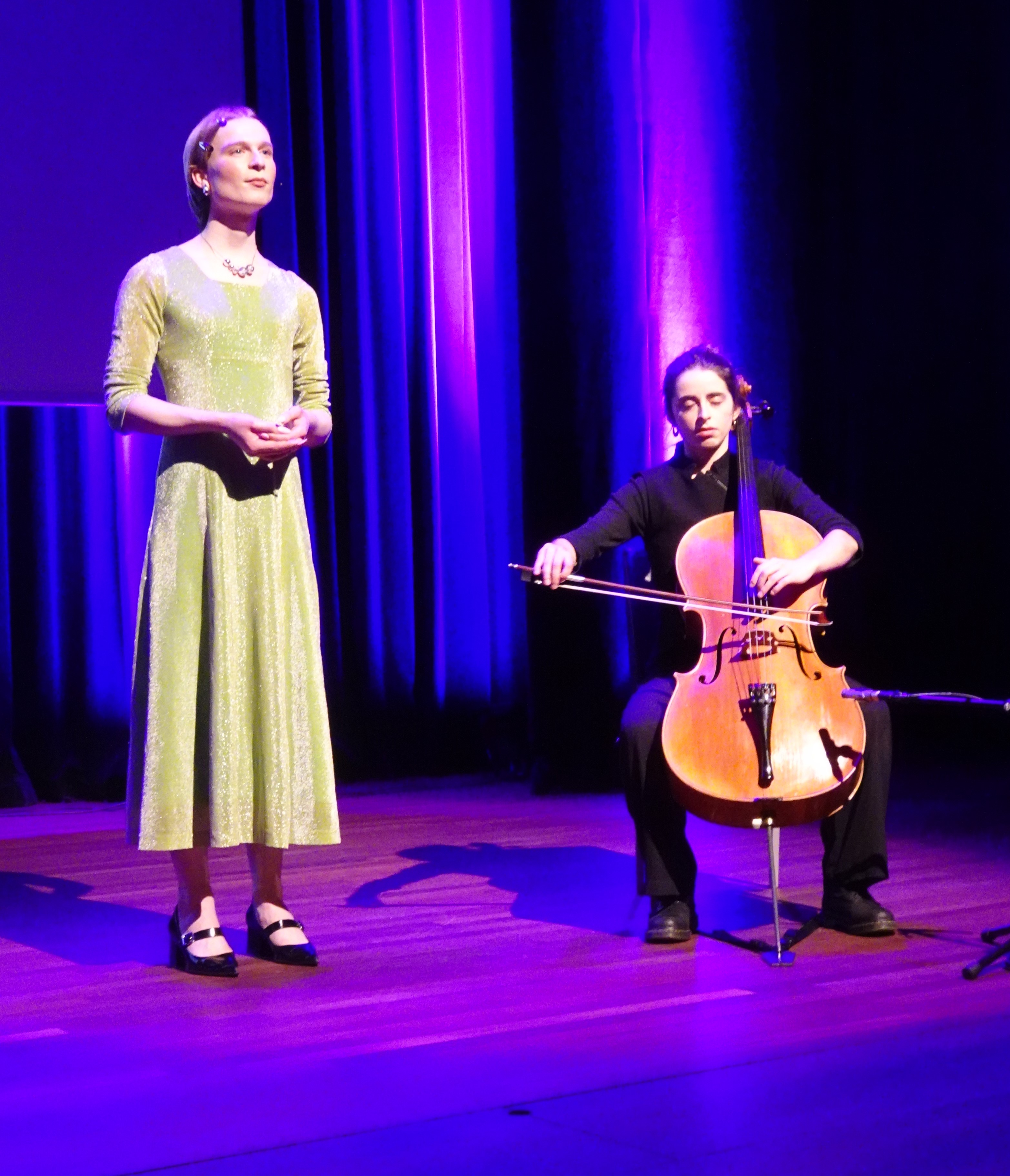 Voordat ze samen het podium op stapten in de OBA hadden dichter/performer Vlinder Verouden en celliste Ceres Lauwers elkaar nog niet ontmoet. Ze spraken elkaar via de chat en repeteerden ook alleen via een scherm. Daar is tijdens hun optreden niets van te merken: ze lijken perfect op elkaar ingespeeld. Vlinder Verouden vangt in woorden net zo makkelijk de schittering van het trans zijn als die van het platteland. En Ceres Lauwers hult die woorden in klanken, maar neemt ook de ruimte om met haar cello het voortouw te nemen.